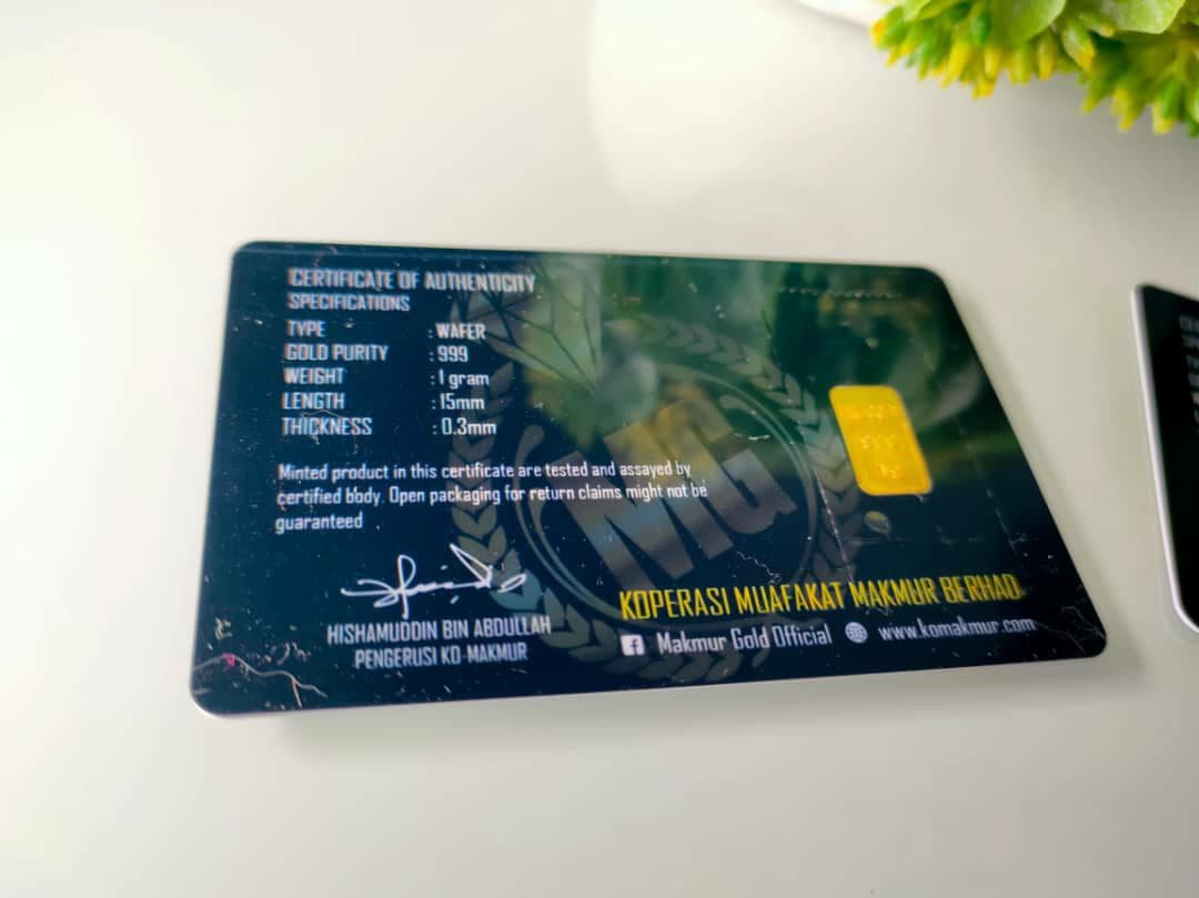 Emas wafer bar MUTU 999.9 24K 1gram MAKMUR GOLD